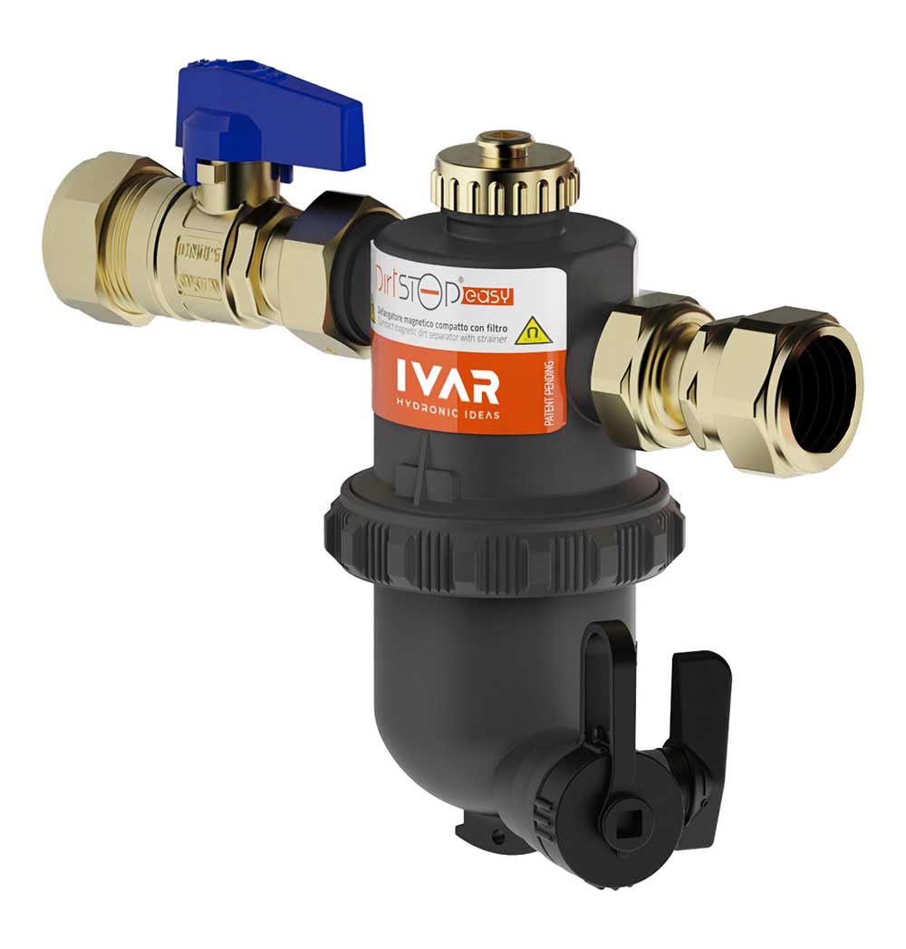 Dirtstop Easy UK (Black) Magnetic Filter with Isolation Ball Valve & 22mm Comp. Fittings.
